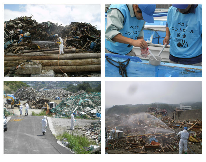 岩手県ペストコントロール協会では、この度の震災における被災者の皆様の救援や被災地の復旧に向け、 支援活動を行って参りました。 今後も微力ではございますが、被災者・被災地の方へご支援をさせていただきますとともに、 一日も早い復旧・復興をお祈り申し上げます。